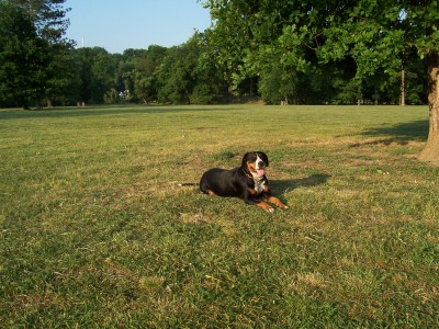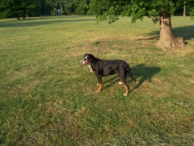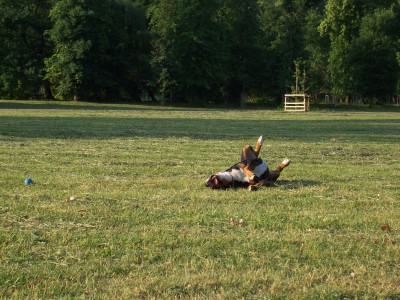 Tuto sobotu jsme vstávaly opravdu brzo - odjezd autobusu v 4.55 :-( Jely jsme prodávat na Trojský ostrov (drezurní závody). Aby z toho Darča také něco měla (když už se snažíme zlepšit kondičku) vystoupily jsme u Kobyliské vozovny a na Troják dosly pěšky. Času bylo hodně a tak Daruška neušla cvičení ve Stromovce. V 6 hodin bylo krásné chladno a celá louka jen pro nás :-)