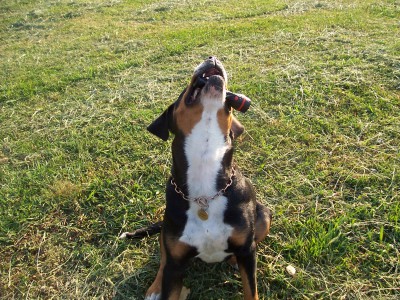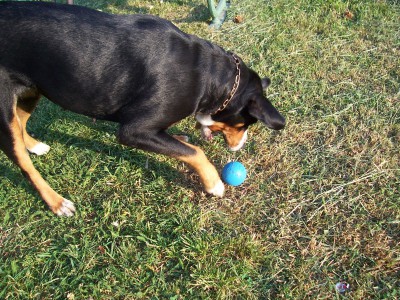 Za výborně splněný povel dostala Darča kromě pamlsku i míček :-)