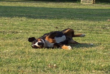 ..probíhalo to tak, že jsem volně pobíhající Darče dávala povely - v případě nesplnění (případně, když sice splnila, ale pomalu), jsem k Darče doběhla a povel s ní splnila (zatlačení zpátky, když bylo zastavení pomalé; zvednutí z lehu, když bylo sedni :-)...
